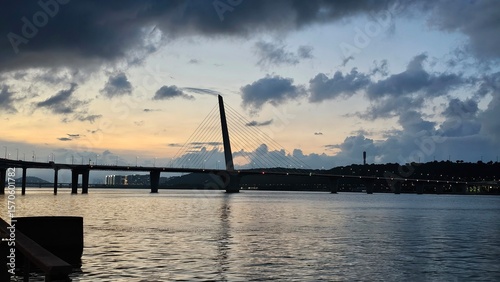석양 속 마곡대교 야경과 한강의 반사 풍경