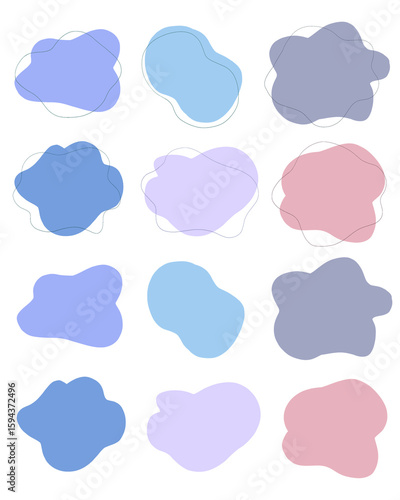 寒色系を基調とした抽象的な流体シェイプのセット素材、透明背景で使いやすいデザインパーツ|抽象,シェイプ,流体,寒色,セット,背景透過