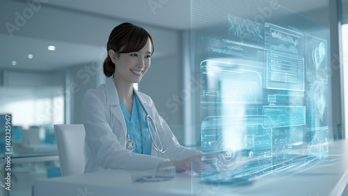 日本人女性医師が診療中