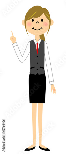 制服姿の女性 指をさす