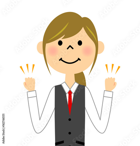 制服姿の女性 ガッツポーズ