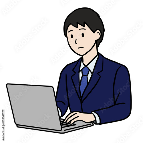 真顔の男性 パソコン作業中