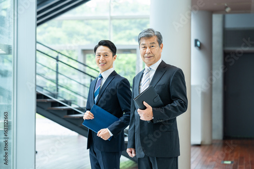 オフィスの廊下に立つビジネスパーソン