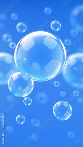 鮮やかな青空に浮かぶ透明なシャボン玉
