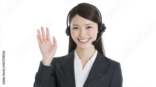 日本人女性が笑顔で案内する