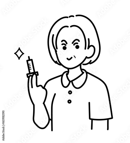 採血には失敗しないベテラン看護師のイラスト 線画のみ