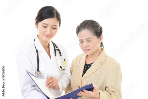 笑顔の高齢者と女医
