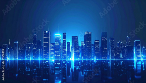 ネオンに輝く未来のシティスカイライン