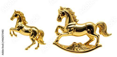 馬 ゴールド 金色 オブジェ 彫刻 芸術 輝き 豪華 縁起物 幸運 躍動感 力強さ 優雅 躍進 光沢 美しい ロッキングホース 飾り