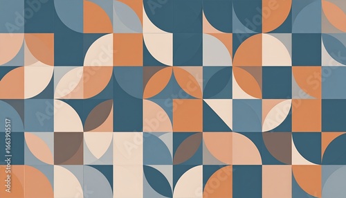 北欧風の幾何学パターン|ブルーとオレンジのモダンデザイン