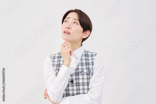 女性 事務員 悩む 白背景