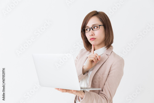 パソコンを見る女性 考える ビジネス