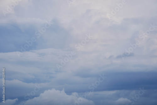 水彩画のように美しい、コントラストの低い灰色の雲の連なり。夏らしい雲と空の背景用素材。