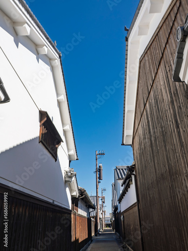 白壁と板壁の今井町路地景観
