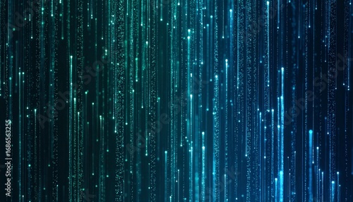 輝くデジタルレイン 青と緑に光る抽象的な未来背景 キラキラ