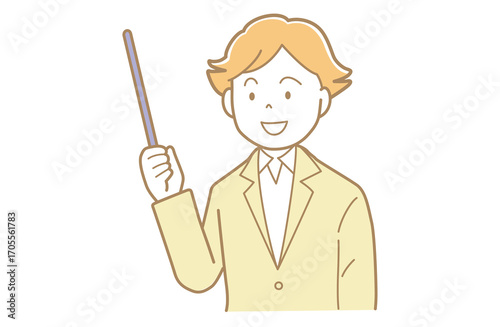 指示棒で指すスーツにノーネクタイで若い男性のイラスト