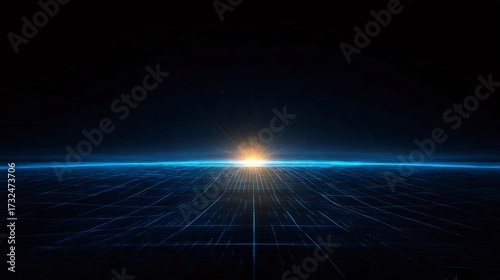 輝く中心光を持つ青い粒子の地平線