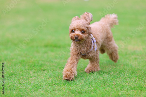 ドッグランで遊んでいるトイ・プードル