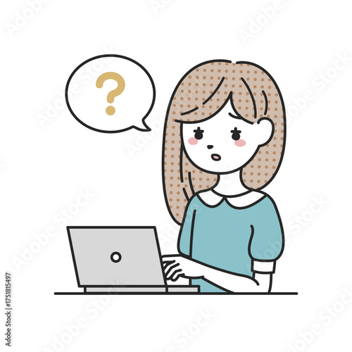 パソコンの前で考える女性