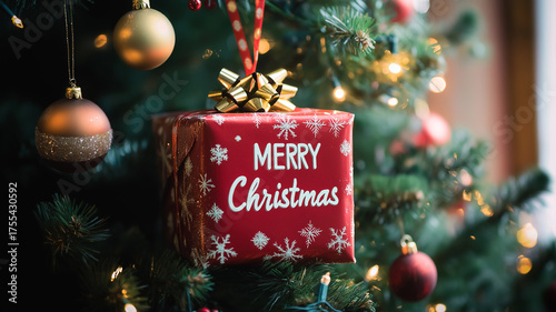クリスマスツリーとたくさんのプレゼントが並ぶ冬の風景イラスト素材|手描き風の装飾が温かみを感じさせる、クリスマスカードや年末年始の挨拶にぴったりなデザイン画像