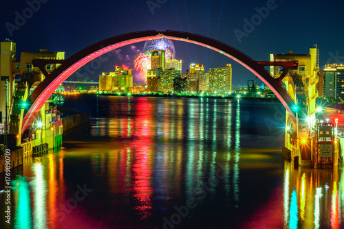 安治川水門と夜景