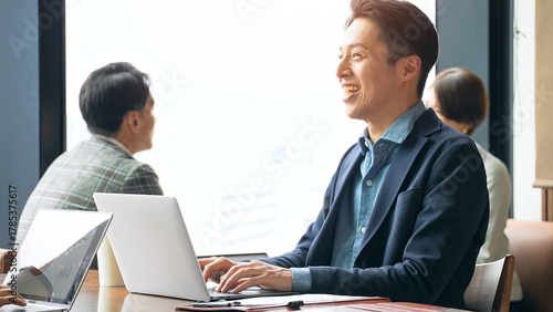ロビーで面談するカジュアルなビジネスパーソンのグループ