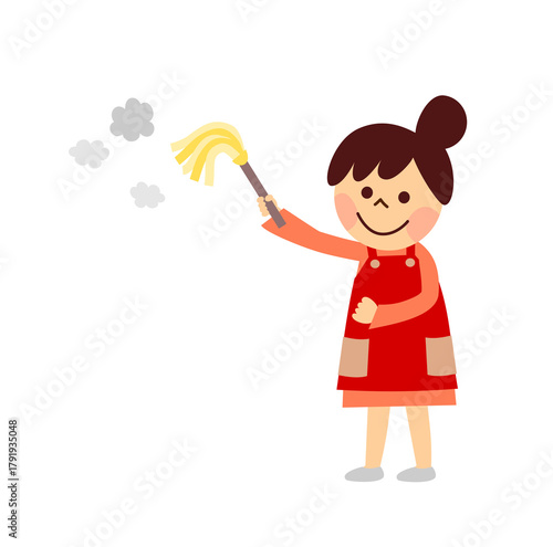 はたきで掃除する女性