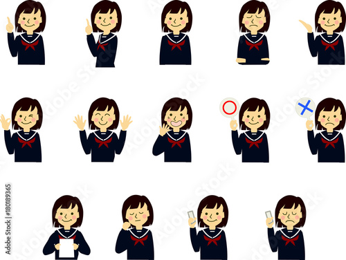 学生 女子 女子高生 高校生 中学生 セーラー服 表情 ジェスチャー セット