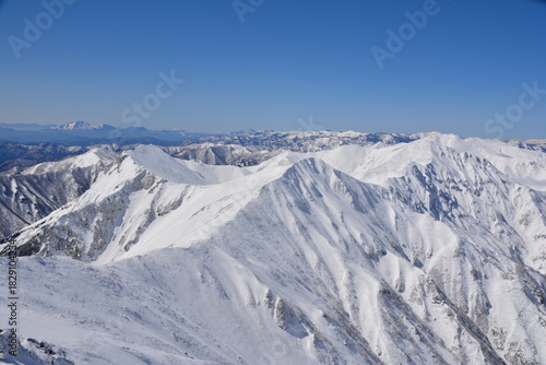冬の谷川岳山頂から見る万太郎尾根