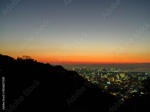神戸市東灘区岡本北小公園からの夜明け 神戸市街地大阪湾を臨む
