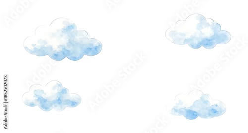 白背景に浮かぶ柔らかい青色の水彩雲イラスト素材