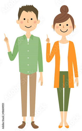 若いカップル 指をさす