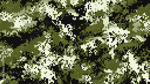 ミリタリー感あふれる緑と茶色のデジタル迷彩柄・ピクセルカモフラージュ背景素材
