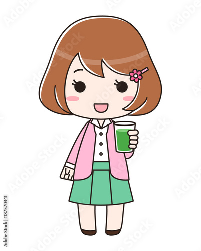 青汁入りのコップを持つ女性
