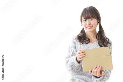 宅配便を受け取る女性