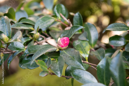 サザンカの赤い蕾