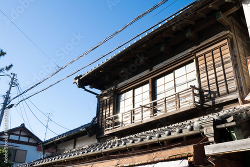 日本の瓦屋根の和風建築、木造建築の2階部分