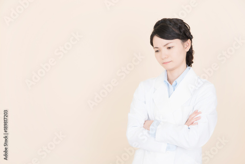 腕を組む白衣の女性