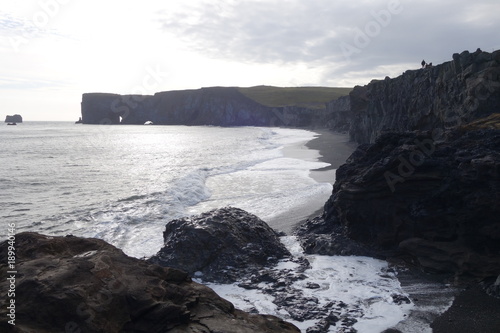 アイスランド南海岸、崖と岩場の波