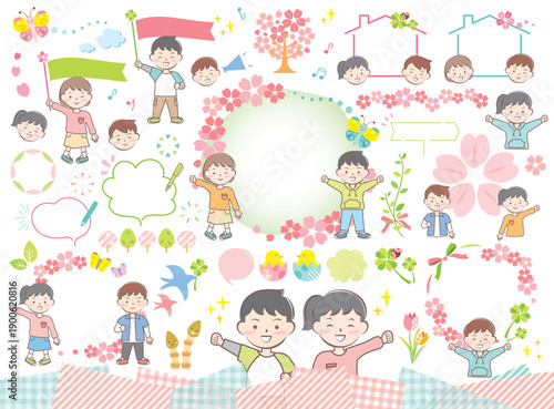 子供と新生活応援のイラストセット 文字なし