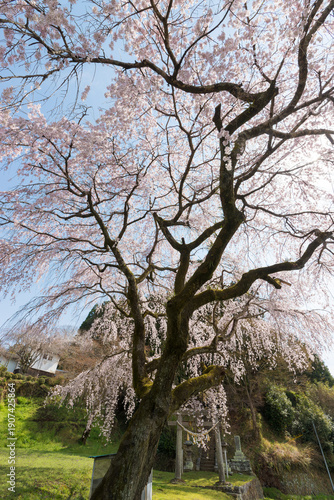 神社のしだれ桜(大分県竹田市)