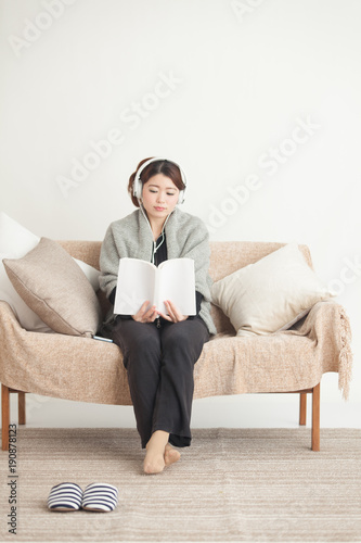 くつろぐ女性・ソファ