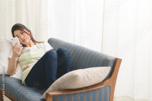 くつろぐ女性・ソファ
