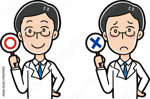 マルバツ札を持った医者のイラスト
