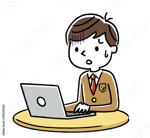 男子学生:インターネット、パソコン