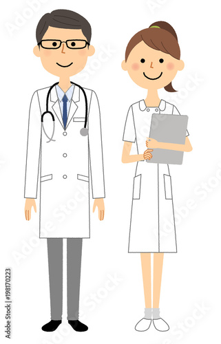白衣の男性と看護師