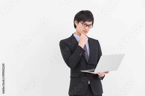 パソコンを見る男性 ビジネス 考える
