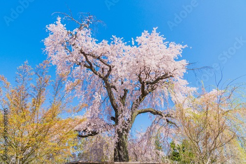 京都の春の風景 鴨川沿いの桜 京都 日本