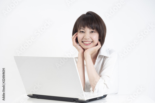 パソコンを見る女性