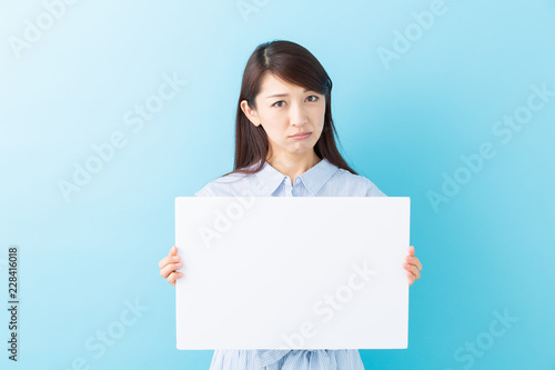 ホワイトボードを持つ女性 考える